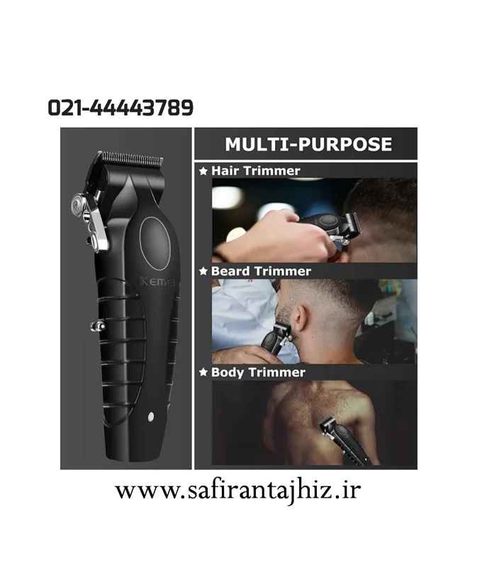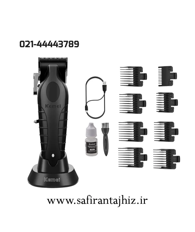 ماشین اصلاح حجم زن برند kemeiمدل 2296. ویژگی های دستگاه عبارت است از:تیغه از جنس کربن و استیل ضدزنگ/باتری 2500میلی آمپری/مدت زمان استفاده مداوم 210دقیقه پس از شارژ100درصدی/اقلام همراه : استند شارژ/آداپتور/کابل شارژ/برس تمیزکننده/روغن مخصوص دستگاه/8 عدد شانه با سایز 3، 6، 10 ، 13 ، 16، 19 ، 22 ، 25/
