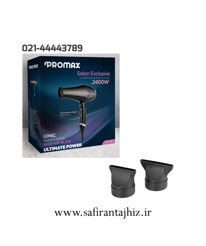 سشوار جدید(2025) و حرفه ای برند پرومکس مدل 2400T :قاب جدید دستگاه به همراه چراغ ال ای دی /موتور سنگین AC 2400W/دارای تکنولوژی آیونیک دائمی/مناسب برای استفاده حرفه ای سالنی و براشینگ/دارای دکمه کول شات(خنک سازی سریع هوا)/بدنه مقاوم و زیبا /2سرعته با 3حالت دمای قابل تنظیم/2عدد متمرکز کننده باد/و...