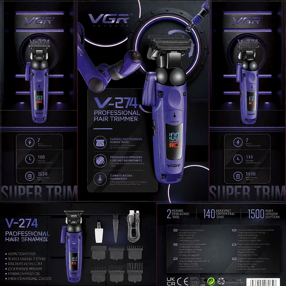 یک دستگاه جدید با قابلیت پیشرفته تنظیم درجه اصلاح بصورت تخصصی .دستگاه خطزن از برند VGRمدلV-274 :تیغه تیتانیوم ارتقا یافته/تکنولوژی اصلاح برش مستقیم/مناسب برای استفاده حرفه ای در آرایشگاه ها/دارای 5عدد شانه تنظیم شونده/صفحه نمایشگر بر روی دستگاه/دارای حالت توربو در موتور هنگام استفاده/140 دقیقه استفاده مداوم در هر بار شارژ100درصدی